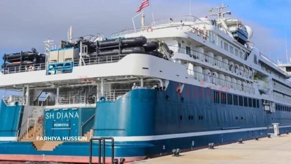 The SH Diana cruise ship docks at Shimoni Port in Kwale County, marking the port’s first-ever cruise vessel arrival. (Photo: Farhiya Hussein)