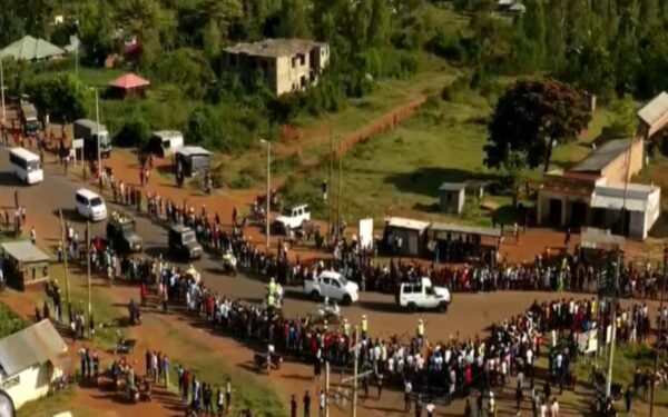 Mourners line the road as the hearse bearing Raila Odinga's remains departs for the former premier's Opoda Farm.