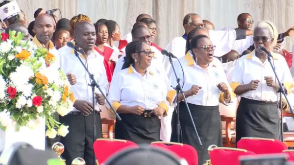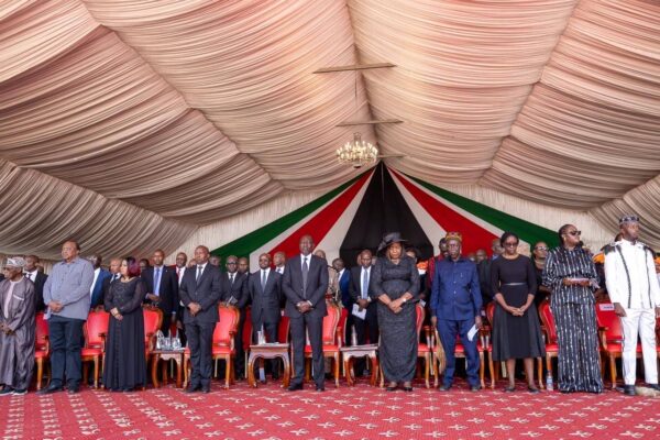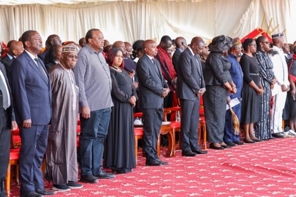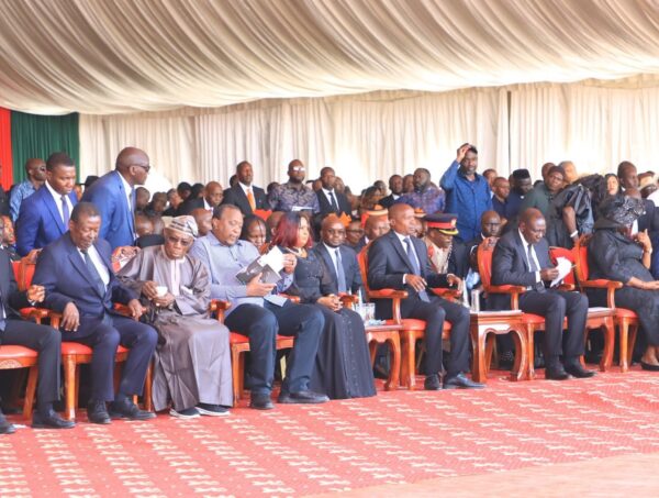 President William Ruto is joined by former President Uhuru Kenyatta, former Nigerian President Oluṣẹgun Ọbasanjọ, along with other dignitaries and government officials.
