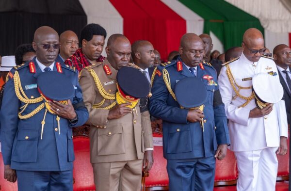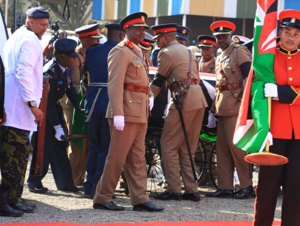 Senior members of the Kenya Defence Forces, led by Chief of the Defence Forces of Kenya Charles Kahariri at the Jaramogi Oginga Odinga University of Science and Technology (JOOUST) grounds.