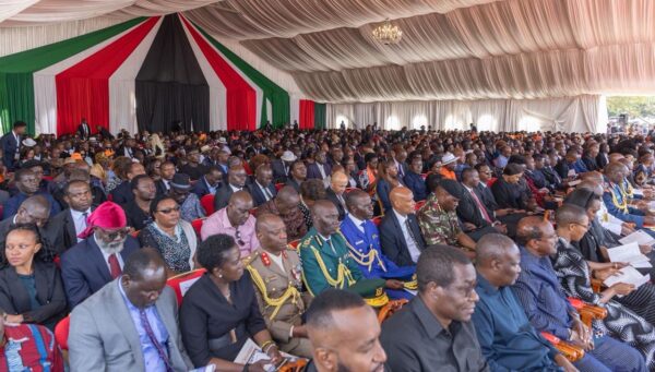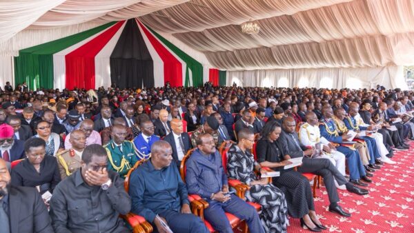 Senior government officials and other dignitaries follow proceedings at the Jaramogi Oginga Odinga University of Science and Technology (JOOUST) grounds.