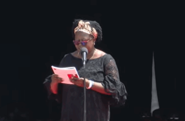 Emily Oginga, the sister of the late former Prime Minister Raila Odinga, reads the eulogy.