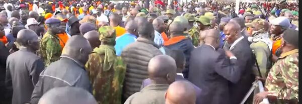 He is accompanied by former President Uhuru Kenyatta, former Nigerian President Oluṣẹgun Ọbasanjọ and Siaya Senator Oburu Oginga.