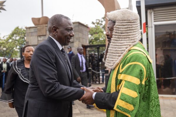 President William Ruto, accompanied by First Lady Rachel Ruto, arrives at Parliament and is welcomed by Speakers Moses Wetang'ula (National Assembly), Amason Kingi (Senate) and Chief Justice Martha Koome, along with the House leadership.