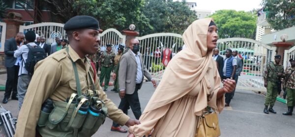 A police officer attempts to arrest activist Hanifa Adan outside Harambee House in Nairobi on September 24, 2024. (Photo: File/Justine Ondieki)