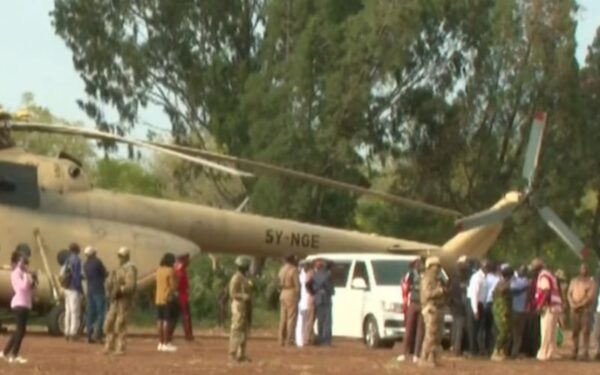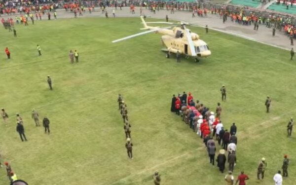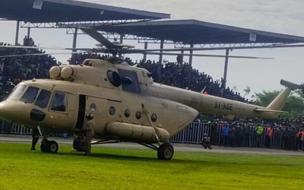 Military helicopter to ferry Raila Odinga's remains for the final night vigil in Bondo ahead of the former premier's burial on Sunday lands at Mamboleo Grounds.