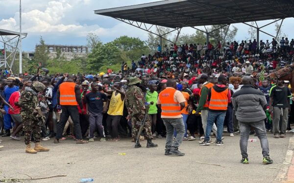 Police hold back thousands as they bid final farewell to Raila Odinga in Kisumu's iconic Mamboleo Grounds.